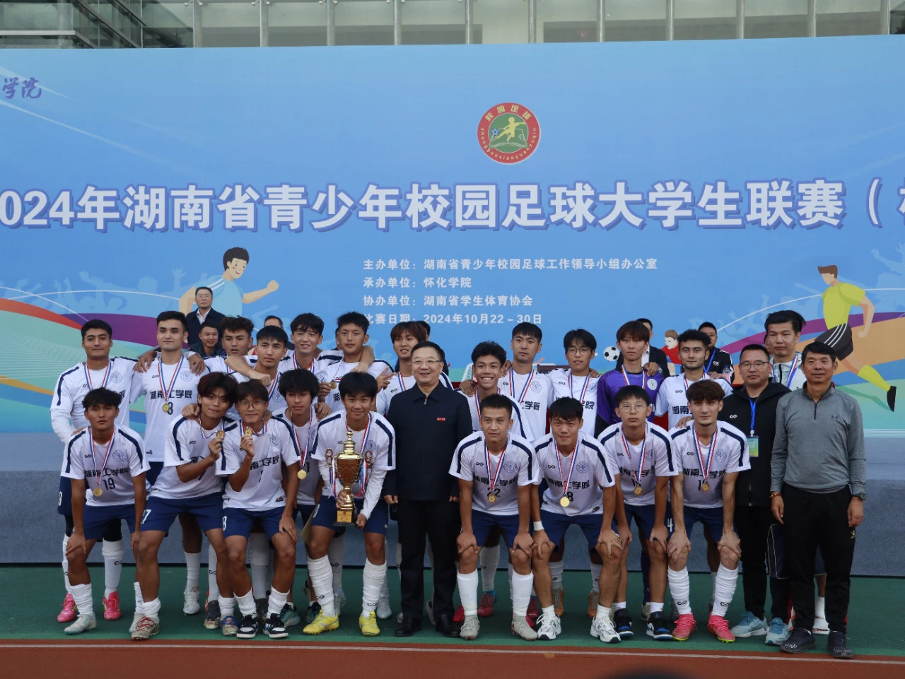 10月29日,湖南省青少年校园足球大学生联赛(校园组)圆满闭幕,我校男子足球队凭借出色的发挥和顽强的拼搏精神,成功卫冕冠军,再次证明了学校在体育教学方面的卓越实力。与此同时,女足也在此次比赛中荣获季军,为学校赢得了荣誉。